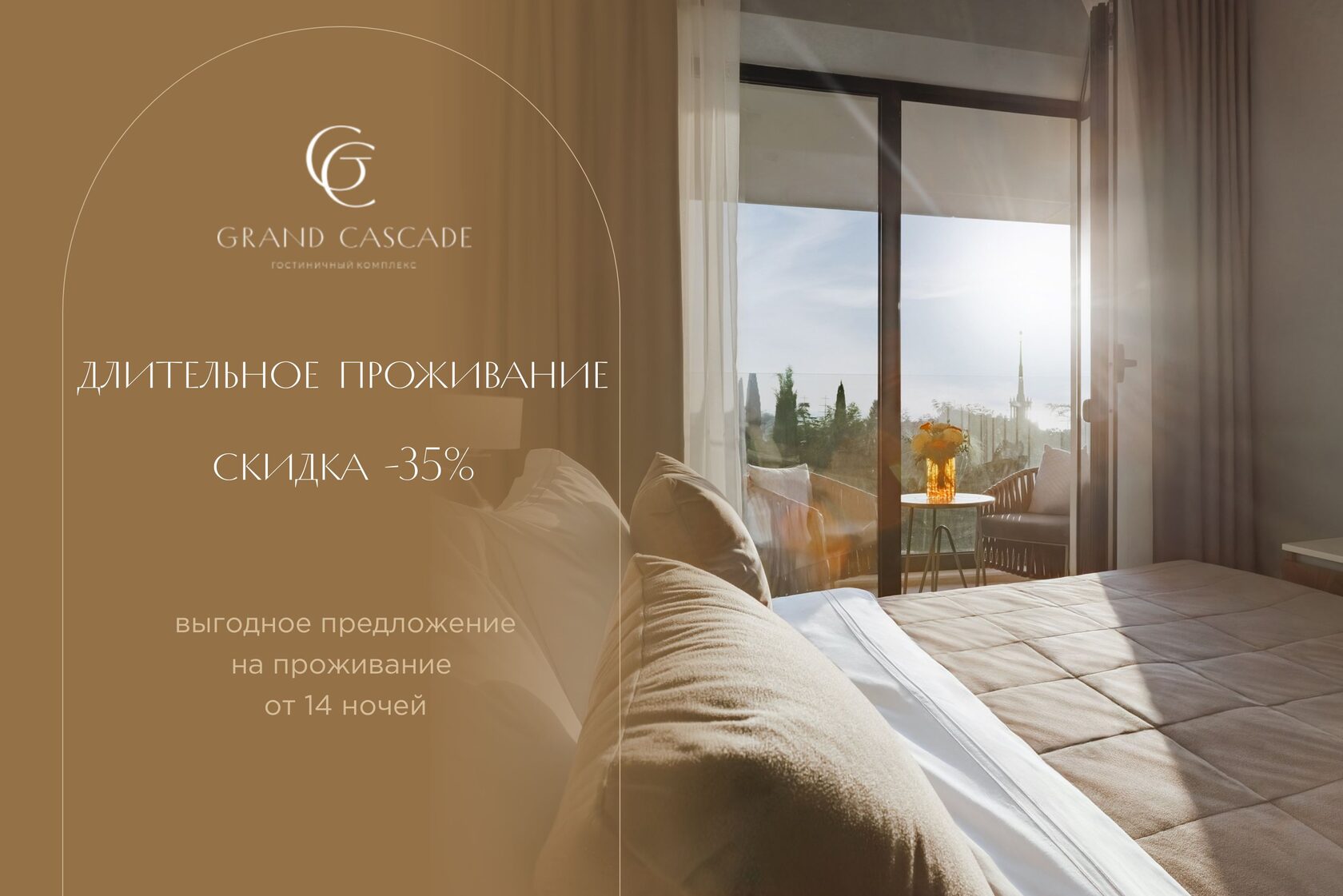 Длительное пребывание в Grand Cascade — это комфорт проживания класса Deluxe в историческом центре Сочи в отеле уровня 5*. Каждый день вас окружает атмосфера приватности, авторский дизайн и инфраструктура премиум-класса — от СПА-комплекса MIR SPA&Beauty до ресторана от Novikov Group.